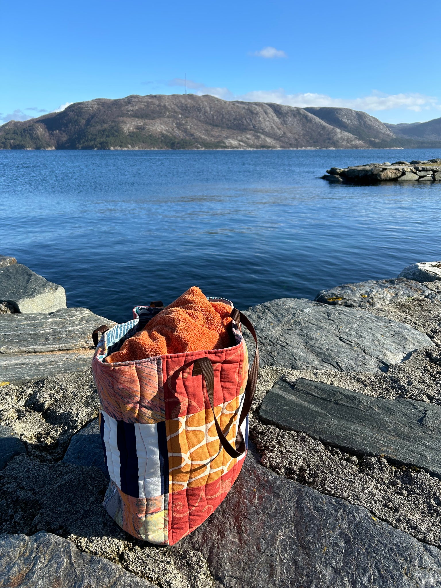 Strandvesken er lett å sy, og passer derfor supert også for barn og nybegynnere. Den har to enkle lommer innvendig slik at det blir lettere å holde styr på innholdet.